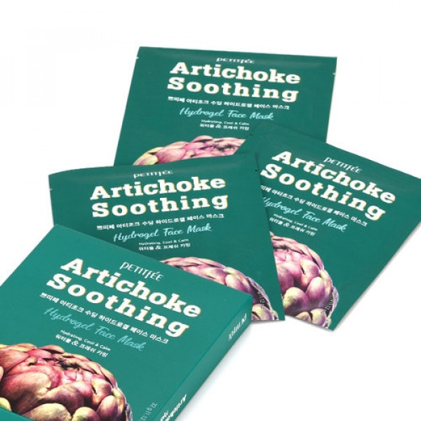 Успокаивающая гидрогелевая маска с экстрактом артишока PETITFEE Artichoke Soothing Hydrogel Face Mask насыщает клетки влагой и витаминами, разглаживает текстуру кожи, сокращает морщины, делает овал лица более ровным и красивым.