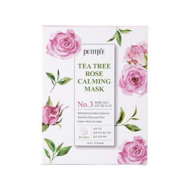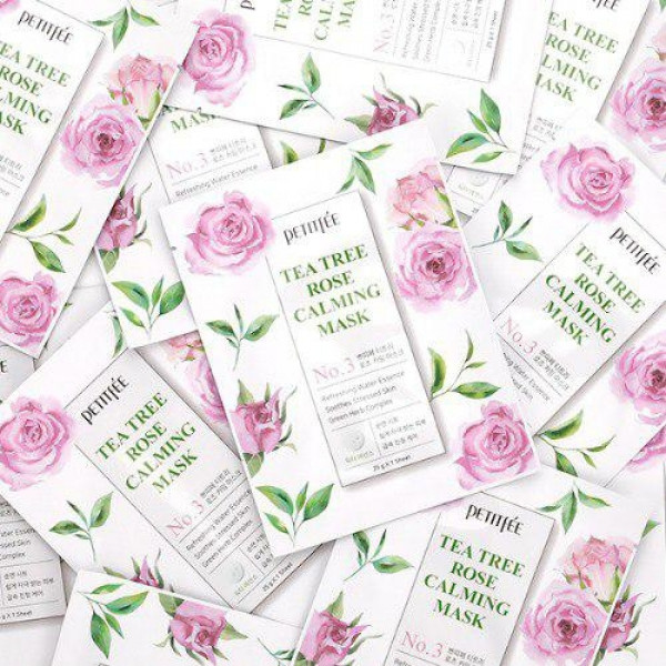 Успокаивающая тканевая маска для лица с экстрактом чайного дерева и розы PETITFEE Tea Tree Rose Calming Mask интенсивно увлажняет кожу, устраняет сухость, сохраняет гладкость и упругость эпидермиса.